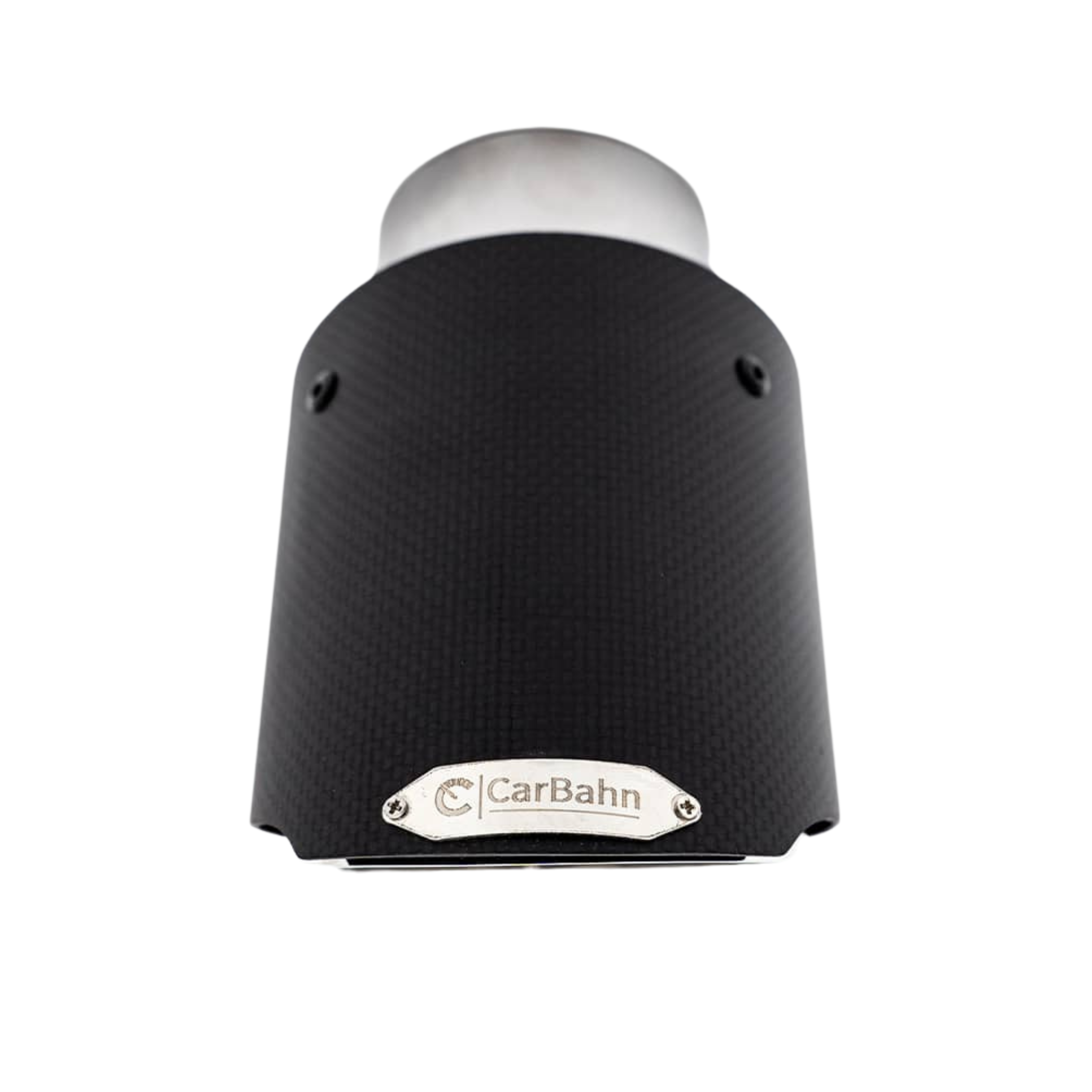 Hand crafted carbon fiber and stainless steel CarBahn exhaust tip for Carbahn exhaust systems. Add some Carbon to the rear of your BMW with exclusive CarBahn badging. There are 4 Tips are included in the kit.