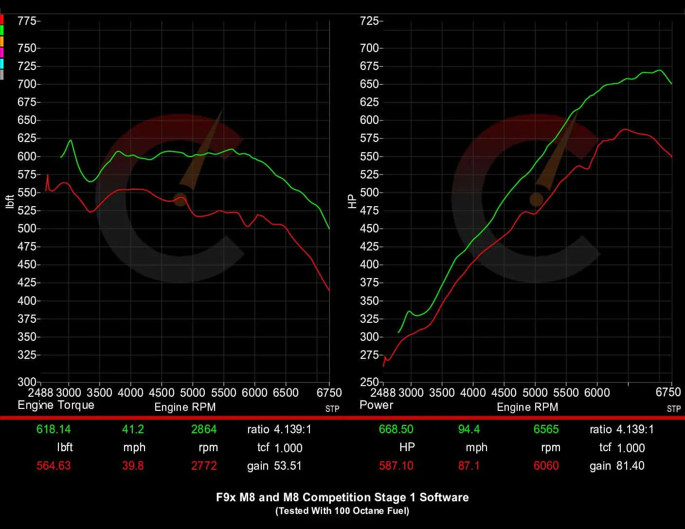 Stock W HP & TQ: 587 Wheel HP & 565 lb-ft Wheel torque