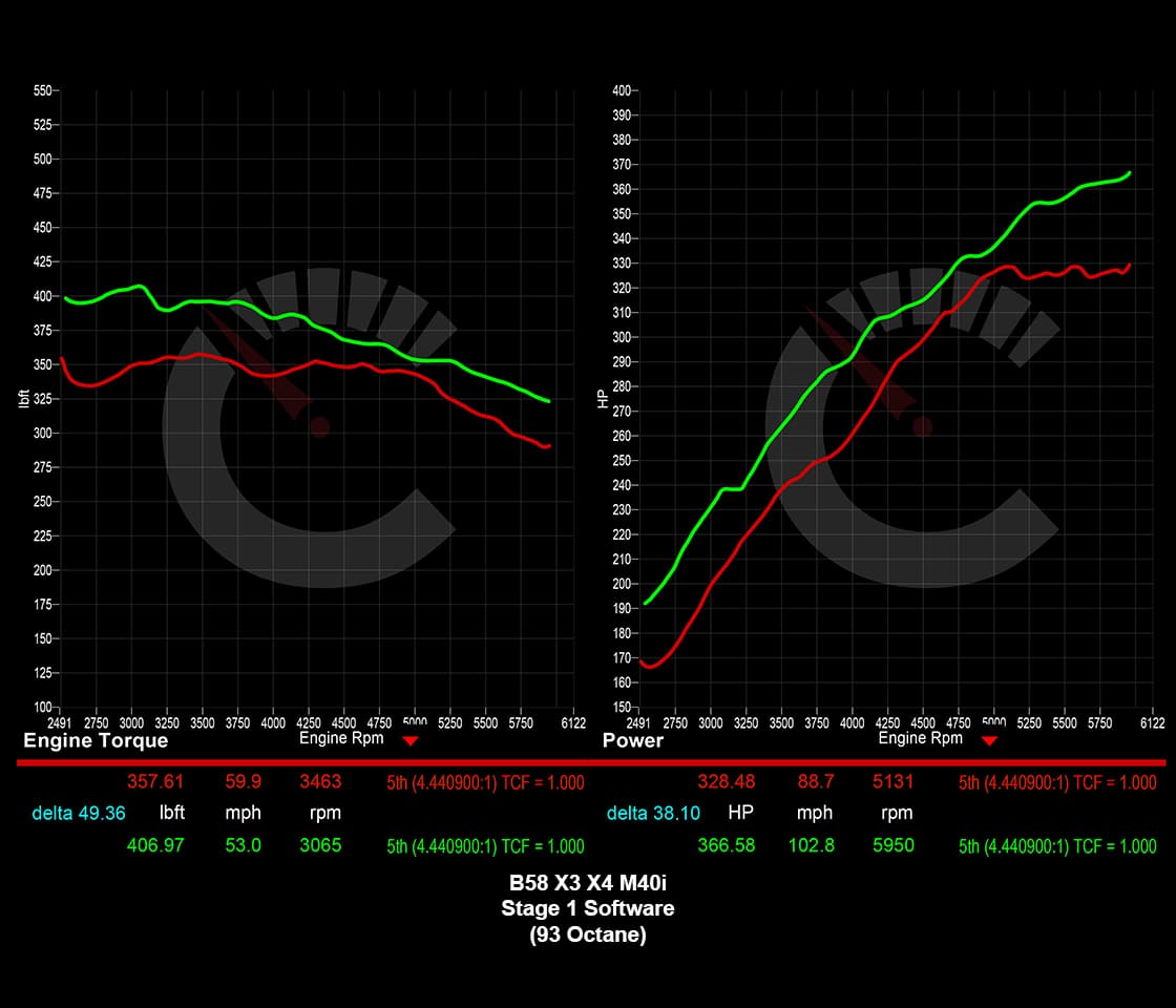 Tuned 93 Octane: 447HP / 496TQ
