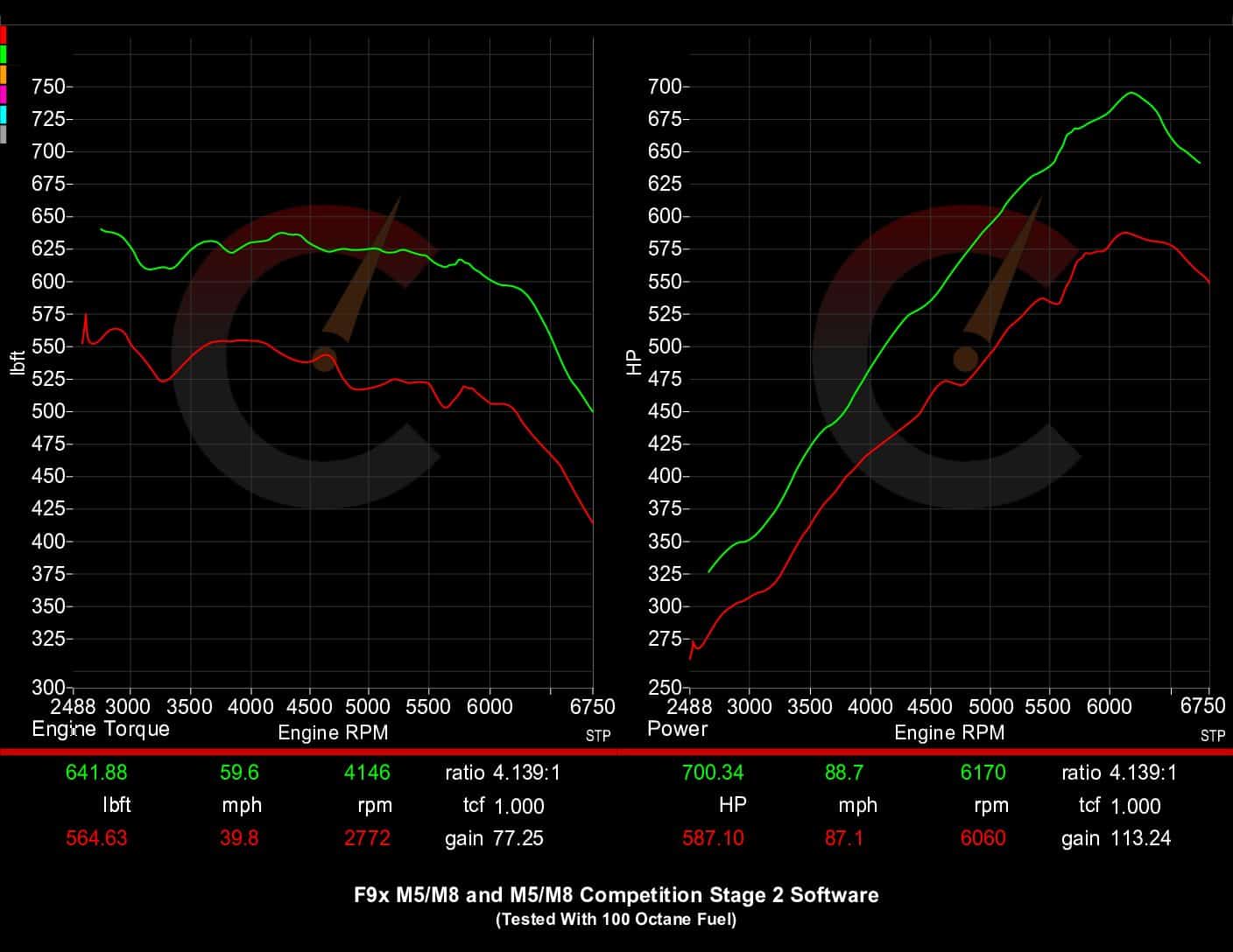 Stock W HP & TQ: 587 Wheel HP & 565 lb-ft Wheel torque