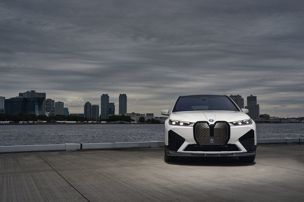 The carbon front lip spoiler maintains the iX's sleek and aerodynamic appearance while adding center air channels that help to balance the giant iX grille. The lip spoiler integrates perfectly into the M-Sport front bumper without severely impacting ground clearance so your iX retains all its intended functionality. Meanwhile the roof spoiler, which is located exactly diagonal from the front lip spoiler, is more understated and just large enough to balance out the addition of the front lip.